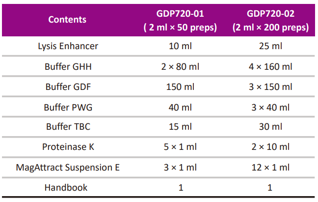 Optional Products:Carrier RNA (Catalog No. GRT416-02); Magnetic Frame (Catalog No. OSE-MF-01)
