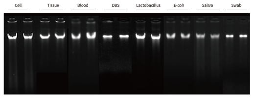 Experiment result: using TGuide S16 with reagent TGuide Smart Universal DNA Kit(GDP605) automatically extracted the genomic DNA of multiple samples including cell, tissue, blood, dried blood spot (DBS), Lactobacillus, E.coli, saliva, and swab, achieved good yield and high purity. The OD260/OD280 around 1.7-1.8, and OD260/OD230 > 1.6. Elution volume: 100 μl Agarose gel concentration: 1.5% Loading volume: 1 μl
